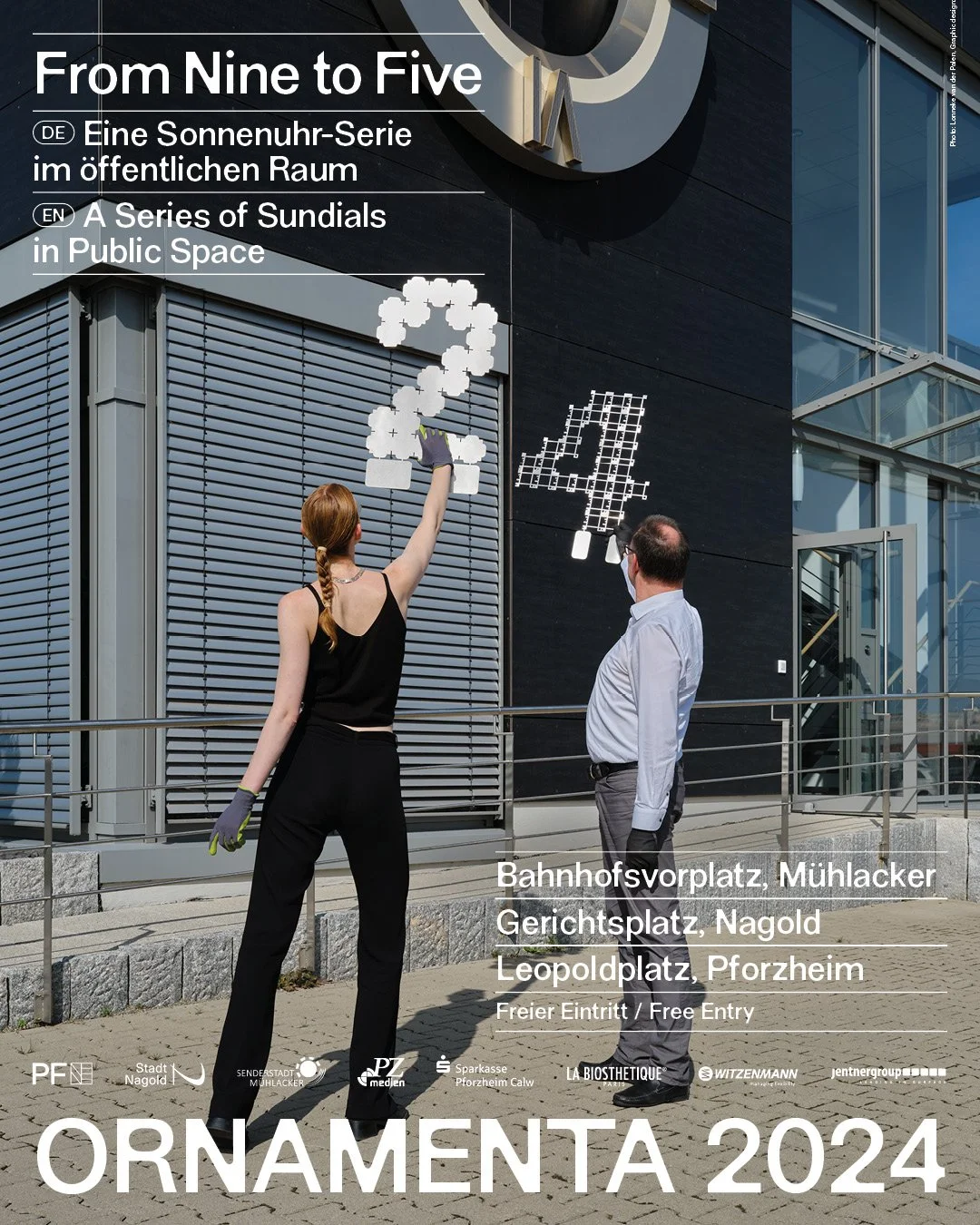 The limited display of the sundial—it reads only from 9:00 to 17:00—aligns with the standard workday in Western society. This, in turn, emphasizes the manipulation of time based on social constructs. Permanently installed in Mühlacker, Pforzheim, and Nagold.